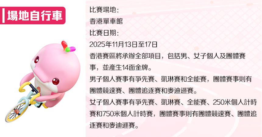 香港將會承辦8個競賽項目,包括籃球(男子22歲以下組)、場地自行車、擊劍、高爾夫球、手球(男子)、七人制橄欖球、鐵人三項及沙灘排球,以及1個群眾賽事活動項目,亦即保齡球。此外,由深圳及珠海分別舉行的田徑馬拉松及公路自行車賽事,計劃以跨境形式舉行,以展現(xiàn)粵港澳三地融合發(fā)展。