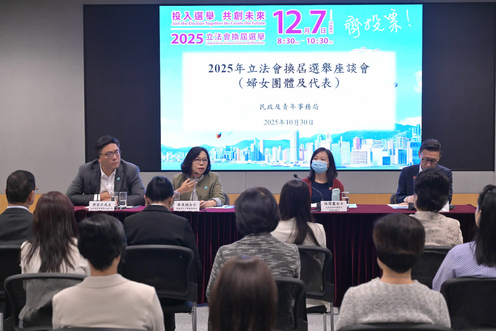 民青局今日舉行2025年立法會換屆選舉座談會,同各婦女團(tuán)體及代表齊聚一堂,鼓勵大家12月7號一齊投票。