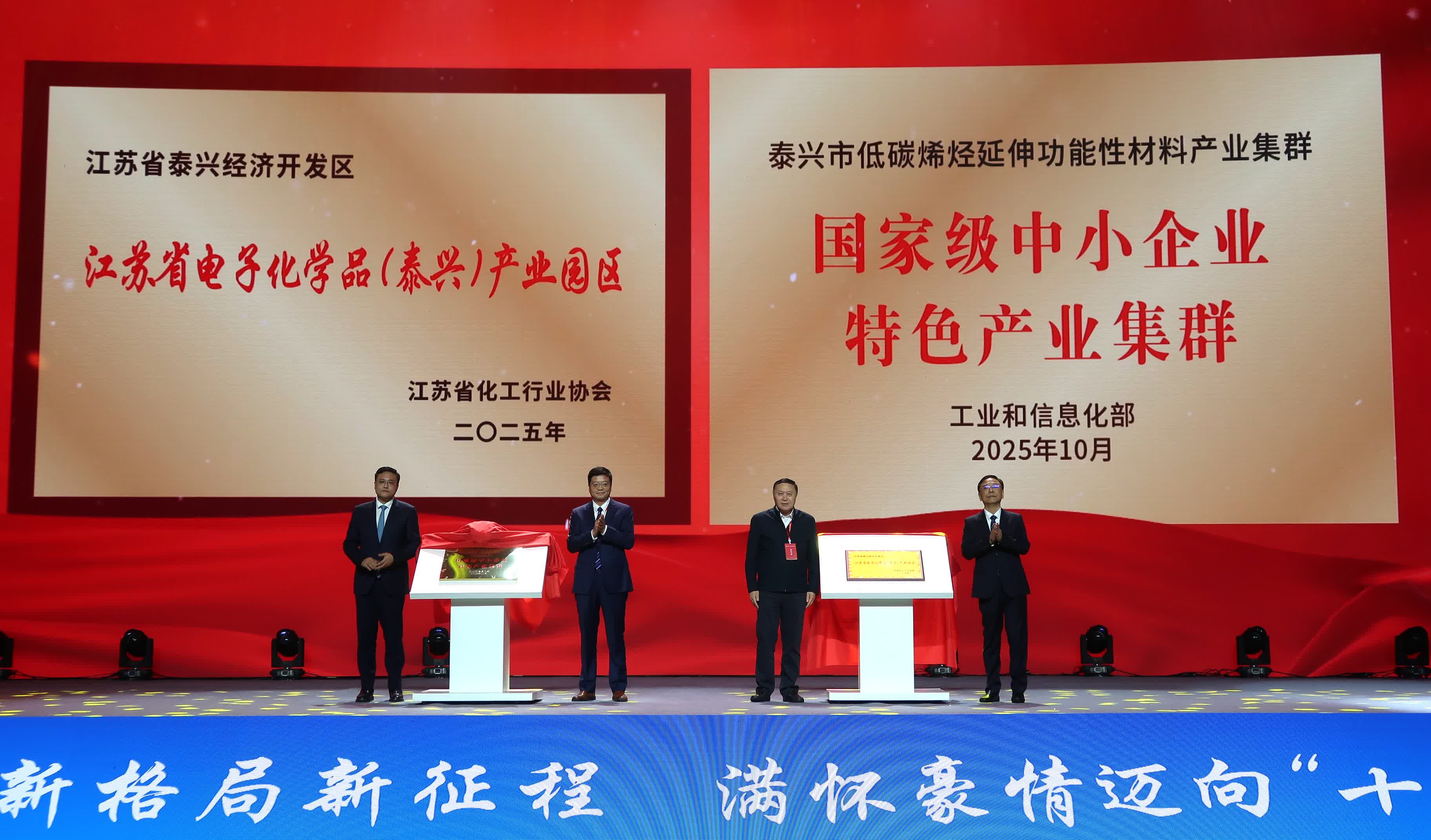 江蘇省電子化學(xué)品產(chǎn)業(yè)園、低碳烯烴延伸功能性材料產(chǎn)業(yè)集群現(xiàn)場揭牌。