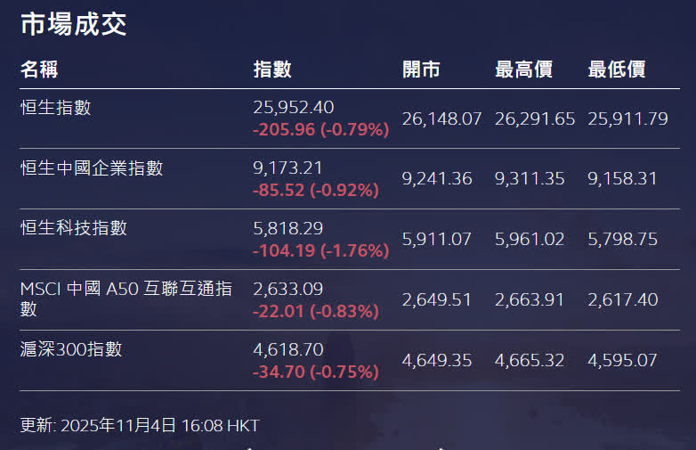 香港文匯報訊 亞太股市投資樂觀情緒回落,日本及韓國市場跌幅較大,分別達1.74%及2.37%。港股受壓,恒生指數(shù)收報25,952點,跌205點或0.79%。國企指數(shù)跌0.92%。恒生科技指數(shù)跌1.76%。大市成交額約2,400億元。
