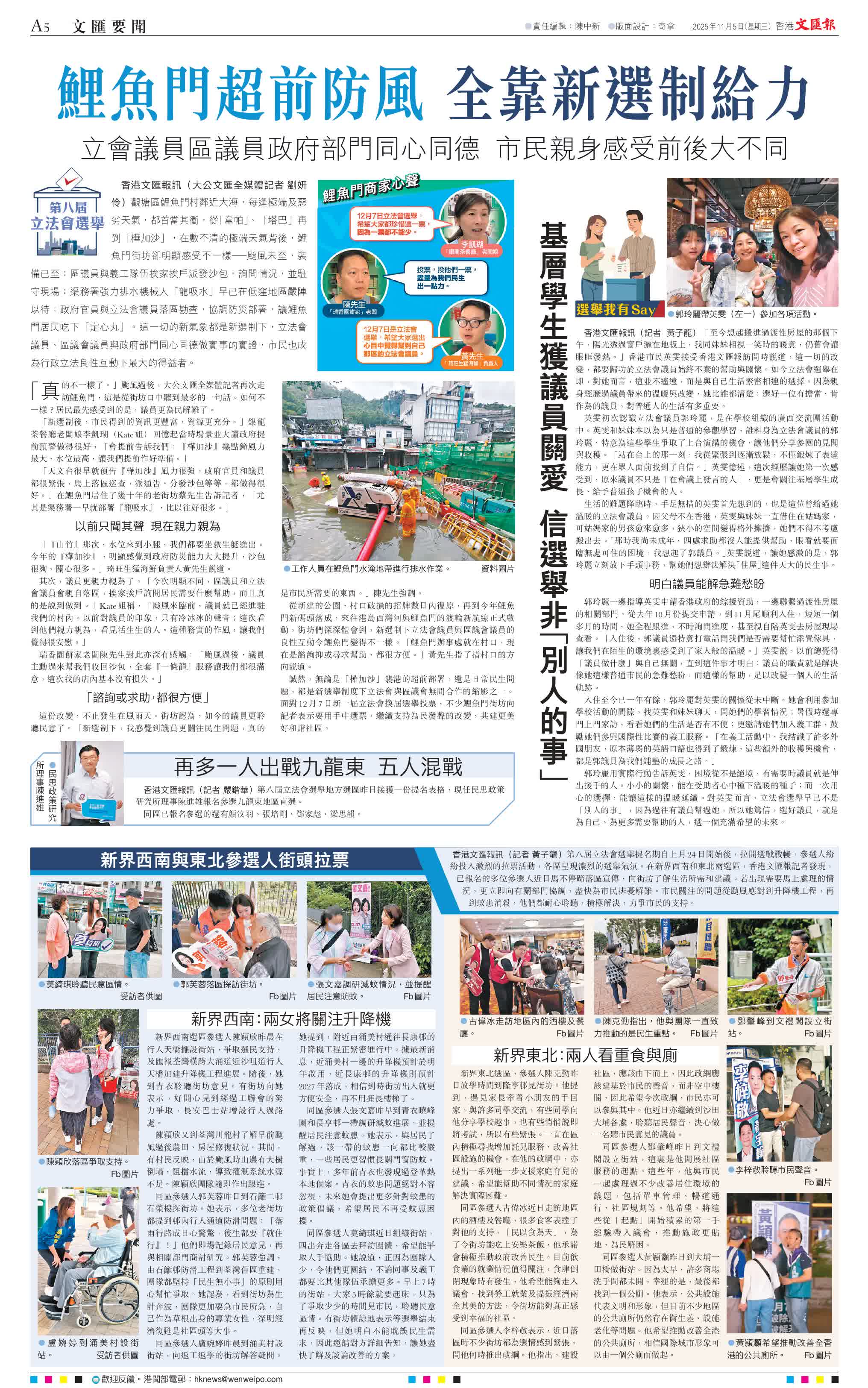 誠然,無論是「樺加沙」襲港的超前部署,還是日常民生問題,都是新選舉制度下立法會與區(qū)議會無間合作的縮影之一。面對12月7日新一屆立法會換屆選舉投票,不少鯉魚門街坊向記者表示要用手中選票,繼續(xù)支持為民發(fā)聲的改變,共建更美好和諧社區(qū)。