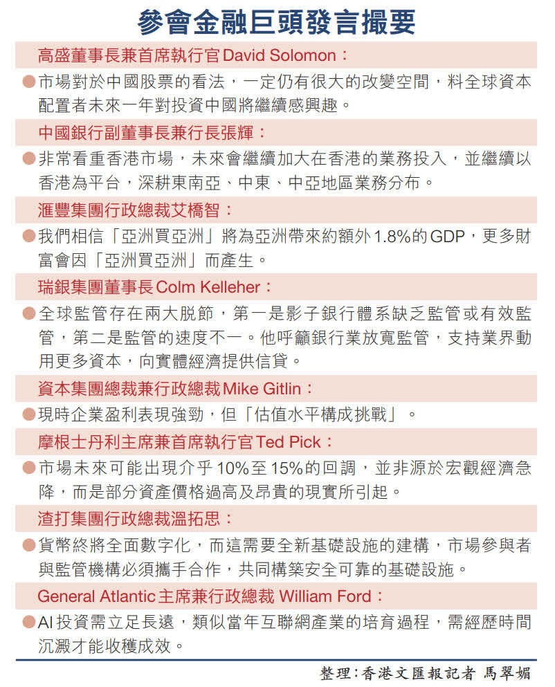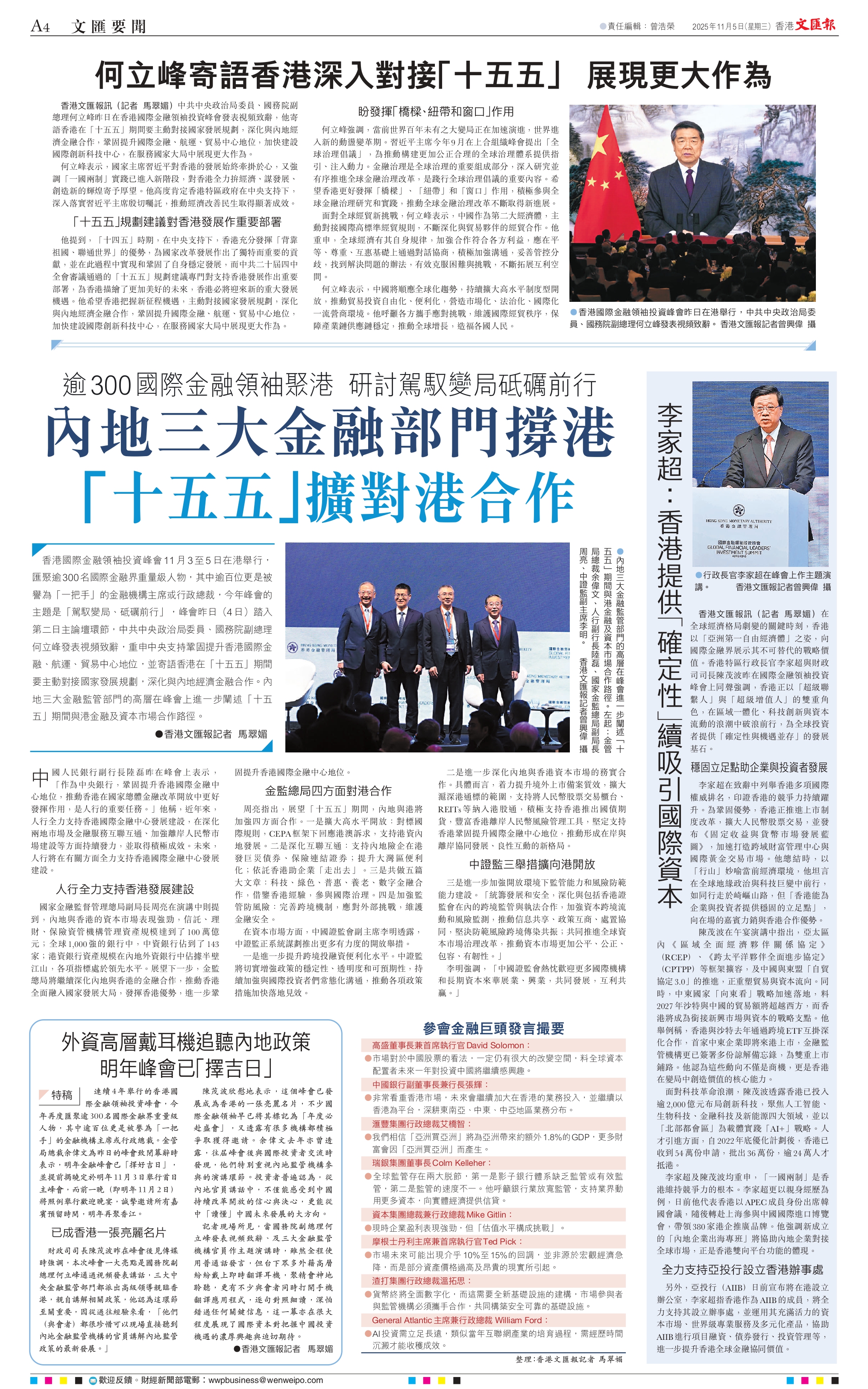 財政司司長陳茂波昨在峰會後見傳媒時強調(diào),本次峰會一大亮點是國務(wù)院副總理何立峰通過視頻發(fā)表講話,三大中央金融監(jiān)管部門都派出高級領(lǐng)導(dǎo)親臨香港,親自講解相關(guān)政策,他認為這環(huán)節(jié)至關(guān)重要,因從過往經(jīng)驗來看,「他們(與會者)都很珍惜可以現(xiàn)場直接聽到內(nèi)地金融監(jiān)管機構(gòu)的官員講解內(nèi)地監(jiān)管政策的最新發(fā)展?!?/p>