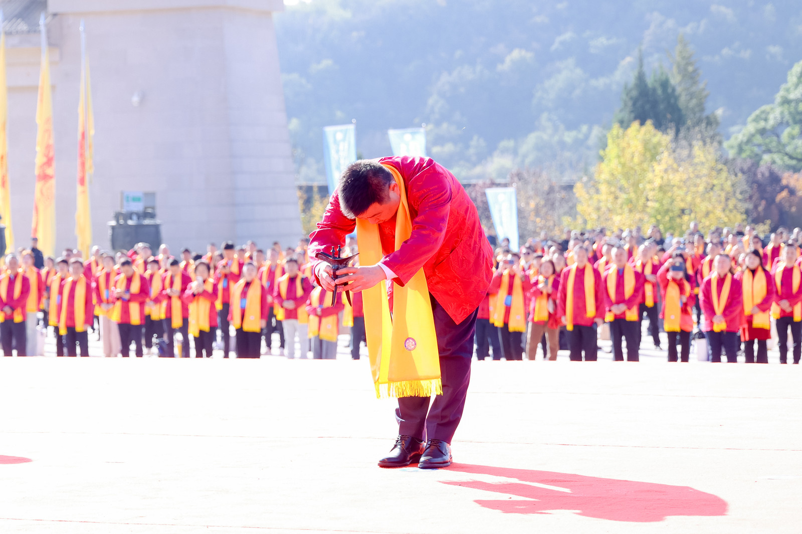 敬獻(xiàn)儀式莊重有序。與會(huì)嘉賓代表依次敬獻(xiàn)花籃、敬上高香、奠酒祭拜。在典雅凝重的氛圍中,恭讀祭文環(huán)節(jié)聲情並茂,祭文追述了黃帝肇造文明的赫赫偉績(jī),並表達(dá)了客屬青年繼往開來、為實(shí)現(xiàn)中華民族復(fù)興偉業(yè)團(tuán)結(jié)奮鬥的共同心聲。隨後,全體人員面向軒轅黃帝像行三鞠躬禮,將典禮的肅穆氛圍推向高潮。