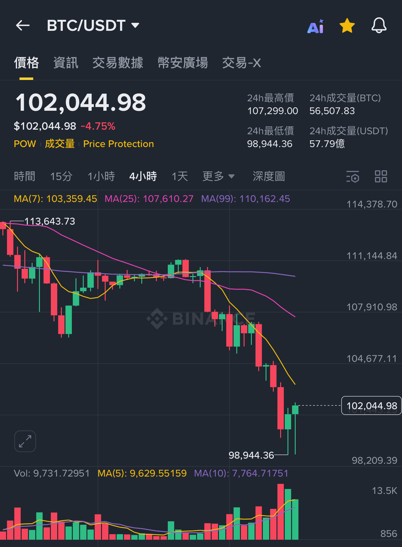 香港文匯報(bào)訊(記者 黎梓田)美國政府持續(xù)關(guān)門,以及美聯(lián)儲鷹派立場降低了對12月降息的預(yù)期,這些因素正在造成顯著的下行壓力。加上長期持幣者大量拋售與資金流出,行情顯示比特幣$BTC今晨一度跌穿10萬美元關(guān)口,低見98,944美元,創(chuàng)近五個(gè)月新低,目前報(bào)102,180美元,日內(nèi)跌幅接近半成。以太幣$ETH亦表現(xiàn)疲弱,一度跌至3057美元,日內(nèi)跌幅高達(dá)12%,現(xiàn)報(bào)3342美元,日內(nèi)跌幅收窄至8%。