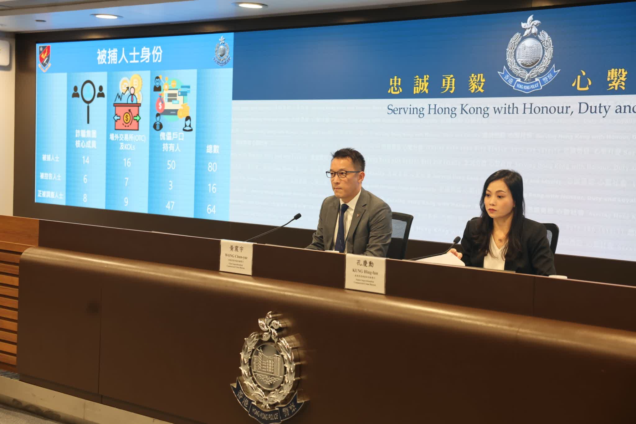 警方高度重視案件,動用刑事部各單位深入調(diào)查,自2023年9月展開調(diào)查至今,警方一共拘捕80人,當(dāng)中包括14人為JPEX犯罪團夥核心成員,16人為加密貨幣場外交易所(OTC)的負(fù)責(zé)人及協(xié)助宣傳JPEX平臺的KOL,其餘人士為懷疑幫助清洗黑錢的傀儡戶口持有人,而其中有部分人士是舊同學(xué)關(guān)係或者犯罪團夥成員。目前,警方總共凍結(jié)資產(chǎn)總值約2億2,800萬元,包括一些銀行戶口結(jié)餘、現(xiàn)金、金條、名貴汽車、虛擬資產(chǎn)等。