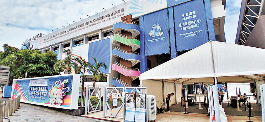 此外,這次的香港傳媒中心選址於西營盤海旁的中山紀念公園體育館,這座建築在外牆加上全運會裝飾,各電視臺可選擇利用室內(nèi)主控室本身或是室外以維港作為背景報道全運會消息。傳媒中心主要為文字記者提供工作間,負責接收和發(fā)布全運會的資訊,而國際廣播中心則整合來自廣州、深圳、香港和澳門的38個比賽項目信號,供給在廣播中心內(nèi)所有電視臺使用。各電視臺通常會在廣播中心設置小型錄影廠,也可以在海旁利用維港的美景進行錄影。