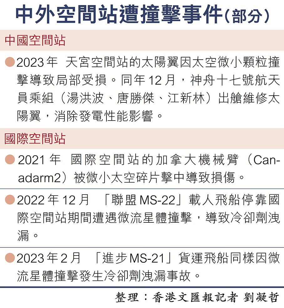 香港文匯報(bào)訊(記者 劉凝哲 北京報(bào)道)中國載人航天工程辦公室5日發(fā)布消息稱,神舟二十號(hào)載人飛船疑似遭空間微小碎片撞擊,正在進(jìn)行影響分析和風(fēng)險(xiǎn)評(píng)估。為確保航天員生命健康安全和任務(wù)圓滿成功,經(jīng)研究決定,原計(jì)劃11月5日實(shí)施的神舟二十號(hào)返回任務(wù)將推遲進(jìn)行。這是中國空間站首次公開因太空碎片撞擊而推遲航天員返回的突發(fā)事件,專家在接受香港文匯報(bào)採訪時(shí)表示,中國有能力排查事故,妥善解決問題,保障航天員的安全。